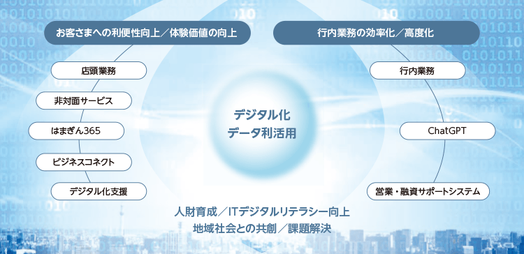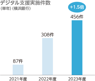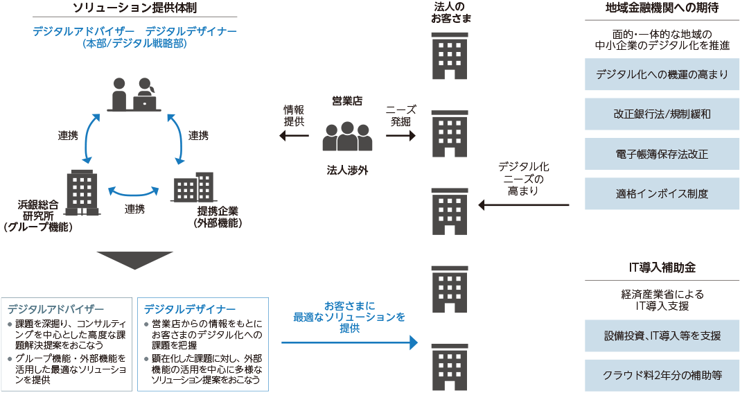 横浜銀行は、デジタルを通じたお客さまの業務効率化や生産性向上のサポート、各法制度対応など、デジタル化支援の強化をはかっています。