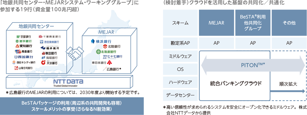 また、2030年度をめどに次期勘定系システムの基盤に関して、NTTデータが構築する国内初のオープン系共同利用型クラウド勘定系システム「統合バンキングクラウド」の利用に向けた検討に着手しました。本取り組みは、2021年11月に発足した「地銀共同センター・MEJARシステム・ワーキンググループ(CMS-WG)」の一環となります。