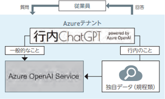 行内ChatGPTは、一般的な「ChatGPT」の機能に加え、両行における各種規程やマニュアルなど行内情報の照会に対応できる機能を備えています。