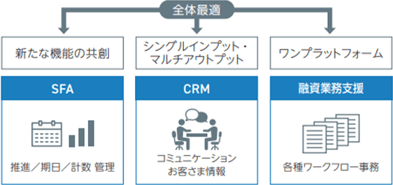 横浜銀行および東日本銀行は、渉外業務改革を実現する次世代SFA・CRM/融資審査システムである「営業・融資サポートシステム」を2024年1月に導入しました。本システムは、2025年5月よりMEJAR5行による共同利用をおこなっています。本システムの導入により、多くの業務で効率化が実現できる見込みであり、削減した時間を渉外活動に充てることにより、お客さまとのリレーション強化にさらなる磨きをかけていきます。