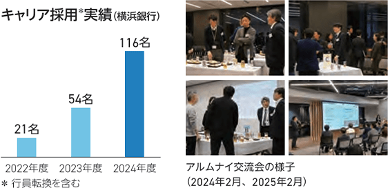 - *横浜銀行グループを一度退職した方同士と銀行グループのネットワーク。2024年度末登録者数209名(前年比+62名)