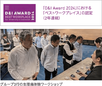 さらに、従業員が育児や介護と仕事の両立、自身や周囲におけるダイバーシティ、エクイティ&インクルージョンに関する事項全般について相談可能な窓口も設置しており、心理的安全性を確保するための職場環境の整備も広く進めています。