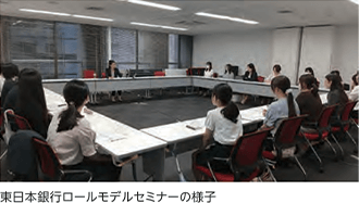 当社グループでは、多様化・高度化する地域社会・お客さまのニーズに応えていくため、マネージャーの多様性の確保、女性活躍推進を重要な経営課題の1つとして捉え、経営会議においても積極的に議論しています。横浜銀行では、2022年度より「女性活躍推進プロジェクトTSUBAKI」を実施しており、研修や社外取締役との座談会などを織り交ぜながら、管理職、経営層への登用を見据えた管理職候補人財の育成やキャリア形成支援をおこなっています。また、東日本銀行では、2024年4月よりDEI推進室を新たに設置し、女性活躍に向けたキャリア形成支援として、役員等による「メンター制度」、「ロールモデルセミナー」、「キャリア開発研修」等を実施し、将来の経営層を担う候補人財の育成とキャリア形成支援をおこなっています。