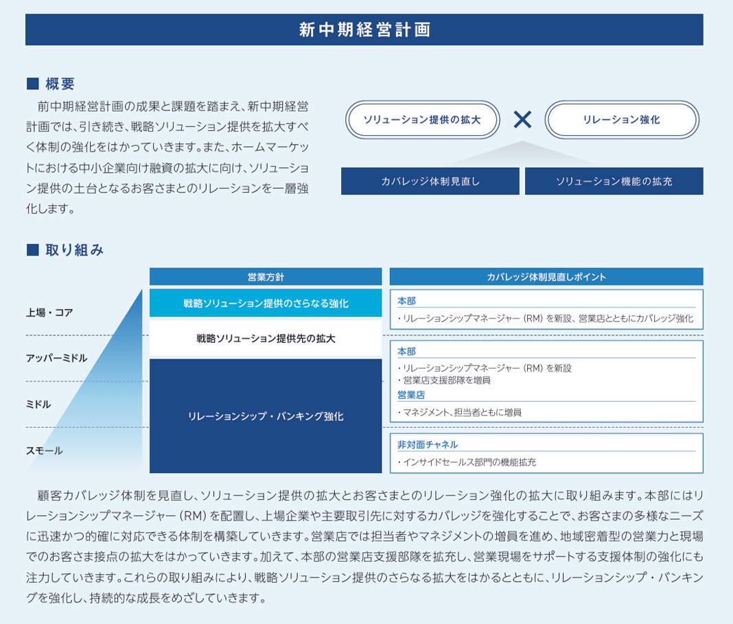 前中期経営計画では、戦略ソリューション提供を強化したことにより、高採算アセットであるストラクチャードファイナンス(SF)を中心に貸出残高、法人部門収益を拡大しました。一方、中小企業向け融資については、ホームマーケットの成長性も踏まえさらなる拡大余地があると認識しています。