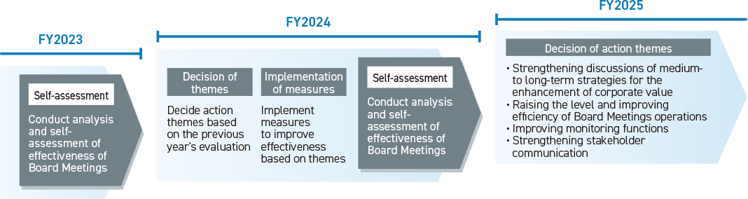 In FY2025, based on the evaluation of effectiveness in FY2024, we will work to further improve the effectiveness of the Board Meetings in order to promote sustainable corporate growth and enhance corporate value over the medium to long term.