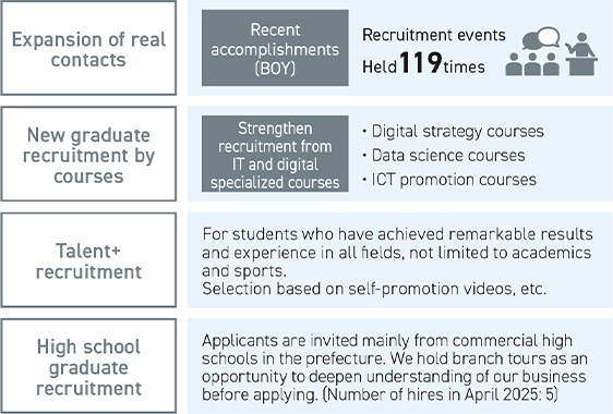 Implementing strategic recruitment activities to secure diverse human resources (new graduate and mid-career recruitment)