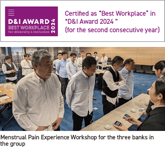 In order to provide optimal solutions to the increasingly diverse and sophisticated needs of local communities and customers, it is important to be an organization where diverse human resources can maximize their individual abilities. To achieve this, we are enhancing our recruitment efforts, upgrading our talent management systems, promoting diversity, equity, and inclusion (DEI), and encouraging the active participation of senior personnel. By doing so, we aim to create an environment where a diverse range of talents can thrive.