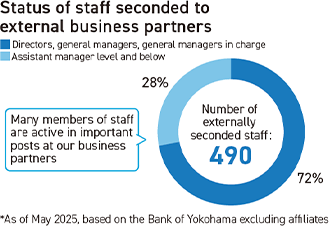 We have introduced the “Career Innovation Support Systems (concurrent positions/side jobs)” that allow employees to take on concurrent positions outside the company or work side jobs in accordance with certain requirements, such as for personal growth or to contribute to their main job or the local community. Since the system was introduced, 17 employees have taken advantage of it. By expanding opportunities for employees to gain a variety of experience outside of banking, this system aims to encourage their self-directed career development and growth outside their existing career paths, as well as to increase the diversity and expertise of human resources, to improve operations productivity, and to reform our corporate culture.