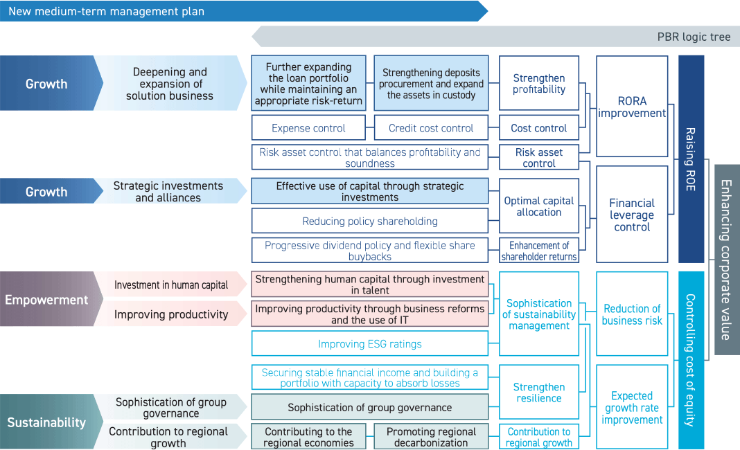 On the other hand, if no appropriate investment opportunities are found, or if the target capital level is exceeded, we aim to achieve a common equity Tier 1 ratio of about 11% by enhancing shareholder returns such as share buybacks. We will promote strategic investment that contributes to raising ROE while keeping in mind the balance between capital utilization and shareholder returns.