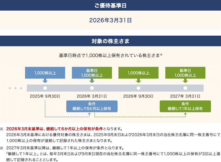 - 優待内容・条件等は、金融環境の変化などによって、変更となる可能性があります。その際は当社ホームページ等にて、あらかじめお知らせしますのでご了承ください。